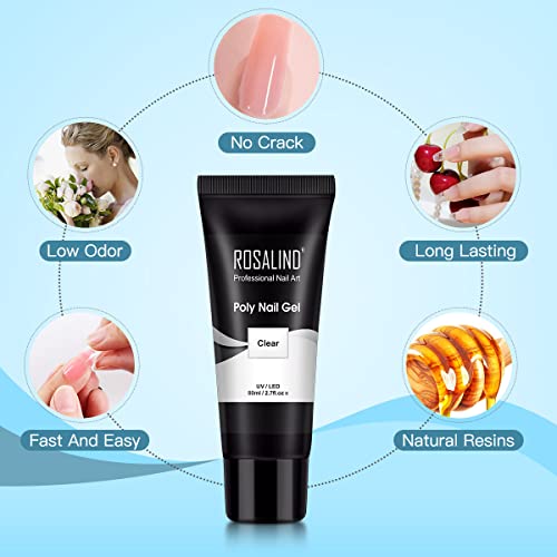 ROSALIND Trasparente Poly Nail Gel 80ml, Ricostruzione Unghie Gel Acrilico per Unghie Ispessente, Gel Extension per Unghie per Principianti e Professionisti Manicure da Salone