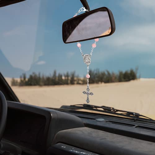 Rosario per auto, colore rosa, per le tue preghiere in auto, piacevole al tatto.