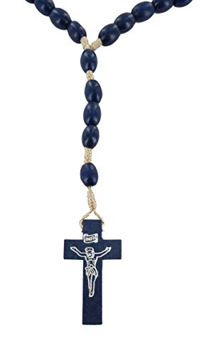 Rosario con grani ovali in Legno Blu Scuro mm 8 con Legatura in Seta