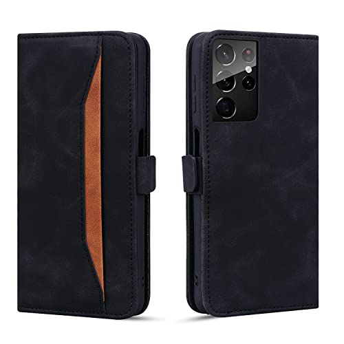 Rosbtib Custodia per Samsung Galaxy S21 Ultra 5G, PU Pelle Portafoglio con Supporto Magnetica Libro Cover Flip Custodia per Galaxy S21 Ultra 5G(Nero)