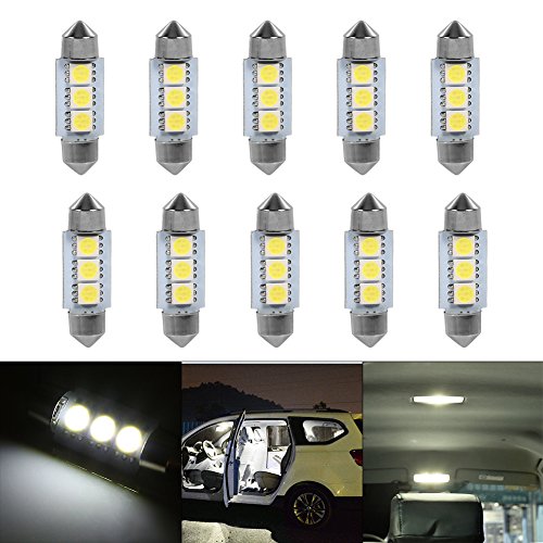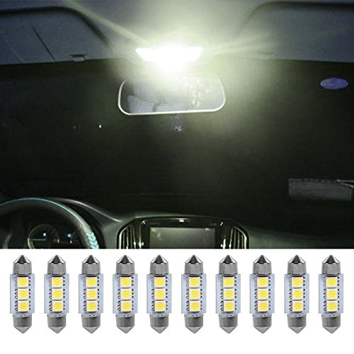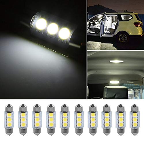 ROSEBEAR 10Pcs 36Mm 3Smd 5050 Led Canbus Festone Lampadina Targa Auto Luce Cupola Interna Lampada Bianco Dc 12V