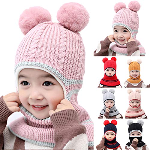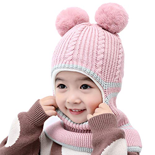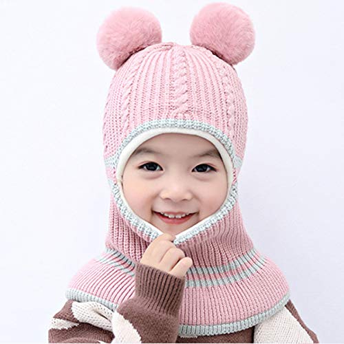 ROSEBEAR Cappello Invernale per Bambini Cappuccio Caldo con Paraorecchie Lavorato a Maglia per Bambini Cappuccio Foderato in Pile Antivento per 2-5 Anni Ragazze Ragazzi (Rosa)