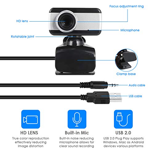 ROSEBEAR 480P Usb 2. 0 Web Cam con Microfono Clip-On Videocamera Laptop Desktop Webcam Videochiamata Registrazione Conferenza