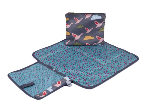 Rosebud London Changing Station - Borsa portapannolini con tracolla regolabile, motivo "Oche che volano", colore: Grigio