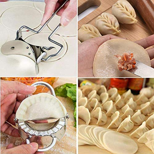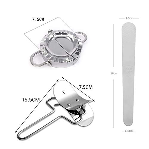 RoseFlower 3Pezzi Acciaio Inox Dumpling Maker Pie Ravioli Mold Kit,1 stampi per gnocchi(diamètre:7.5cm),1 taglierina per rulli,1 cucchiaio da ripieno-per Dumpling Pie Gnocchi Ravioli Stampo