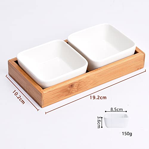 RoseFlower Set Aperitivo Moderno con Coperchi - 2 Pezzi Ciotoline quadrate con Supporto Bambù - Finger Food Contenitori per Salse Snack antipasti Dessert - Ciotoline Ceramica Casa, Porcelain, White
