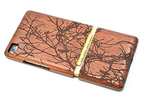 RoseFlower (TM Huawei Ascend P8 Custodia in Legno - Legno di Rosa Albero - qualit à Premium Cover in bambù/Legno Naturale con Gratis Paraschiena Schermo per Il Tuo Smartphone (Non per P8 Lite)