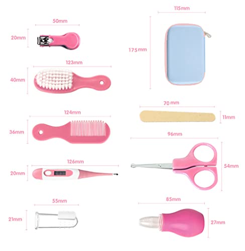RoseFlower 8 Pezzi Kit per la Cura del Bambino, Set per la Cura del Neonato, con Spazzola Neonato Lima per Unghie Taglia Unghie Pettine Spazzolino Forbicine, Neonato Accessori Rosa
