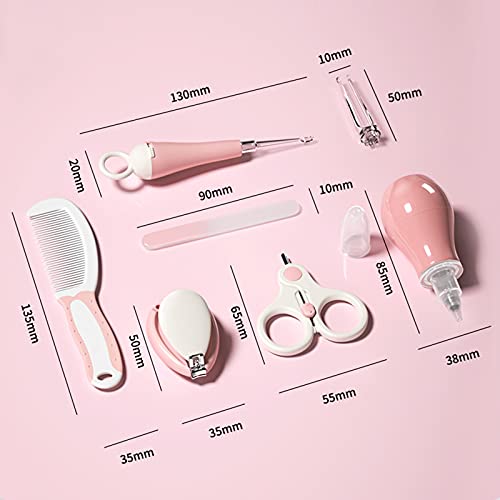 RoseFlower 7 Pezzi Kit per la Cura del Bambino, Set per la Cura del Neonato, con Lima per Unghie Taglia Unghie Pettine Pinzette Forbicine Plettro per le Orecchie, Neonato Accessori Rosa