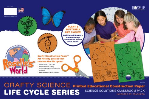 Roselle Crafty Science Printed Educational Construction Paper, "Plant and Butterfly Life Cycles" Pad, 30cm x 46cm, Assorted, 60 Count (02822-8)