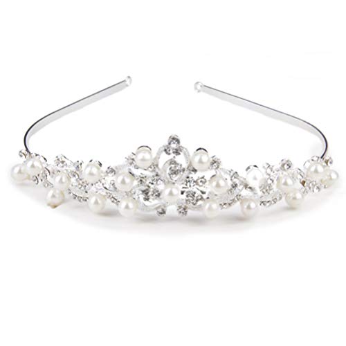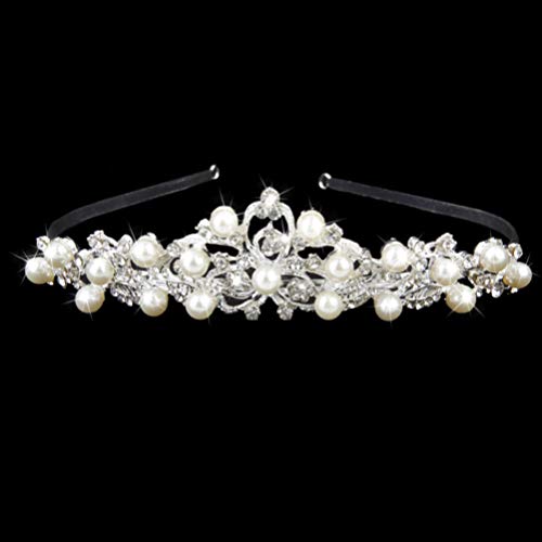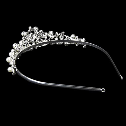 Diadema da sposa colore argento, con perle finte a forma di fiore, cerchietto in metallo, da principessa.