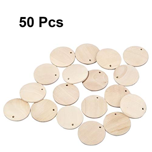 Rosenice - Set di 50 dischetti rotondi, in legno, forati, diametro 4 cm, per progetti fai da te e progetti artistici
