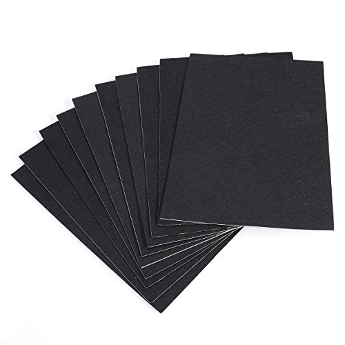 Ogni confezione contiene 10 fogli adesivi neri con superficie adesiva sul retro.