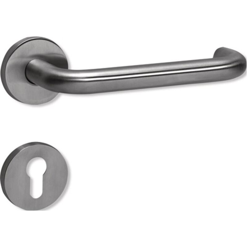 Set di camere · in tecnologia H secondo DIN 18255 e DIN EN 1906 in acciaio inossidabile, terreno superficiale opaco, composto da: maniglia della porta 112XAH, diametro 21,3 mm, rosette rotonde 305.21XAH e 306.23XA, con modulo integrato ad alta tenuta con supporto a molla · il pusher soddisfa i requisiti di DIN EN 179 e DIN 18040 · Categoria d'uso: Set classe 4 con perno quadrato 8 - 8,5 mm · Proposta di attuazione! Si prega di controllare tutte le dimensioni e le condizioni strutturali in caso di ordine! Altre caratteristiche tecniche: · Standard: DIN EN 179 / DIN 18040