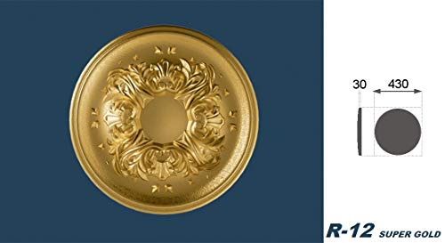 Rosetta decorativa R-12.super.gold, dimensioni 430 x 430 x 30 mm, densità circa 50 kg/m³