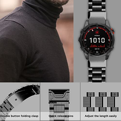 Rosok Cinturino Compatibile con Garmin Fenix 7S/Fenix 6S Pro/Fenix 6S/Fenix 5S Plus/Fenix 5S, [20mm QuickFit Cinturini di Ricambio in Acciaio Inossidabile] Bracciale per Garmin Descent Mk2S - Nero