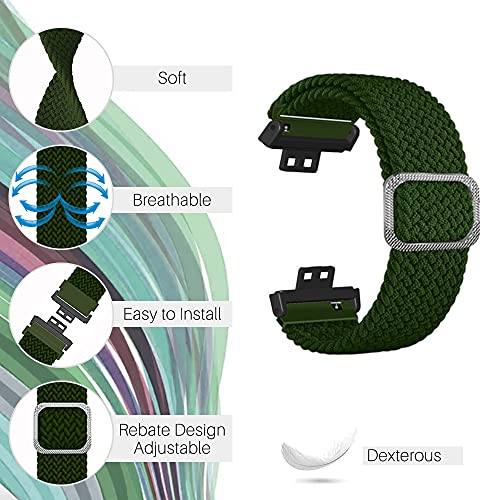 Rosok Nylon Cinturino Compatibile con Huawei Watch Fit, Regolabile Donne Uomini Sportiva Ricambio Elastica Cinturino per Huawei Watch Fit - Verde