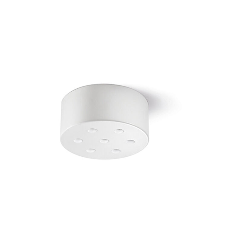 Collezione Rain COMPONI LA TUA LUCE Rosone multicavo in metallo verniciato a polvere (7 fori) bianco opaco D.12 x H.5 cm. COMPONI la tua sospensione con RAIN! Diventerà così un pezzo unico da appendere dove vuoi. Selezionando tra l'ampia gamma di vetri e accessori disponibili potrai riempire i tuoi ambienti di meraviglia.