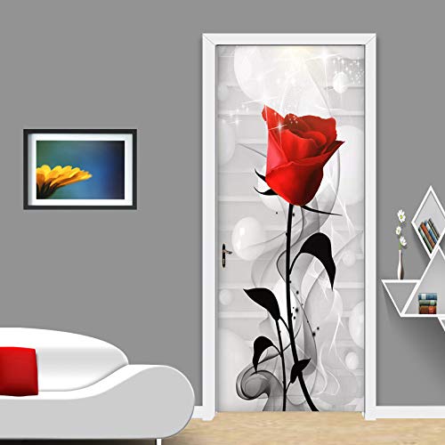 Rosa rossa astratta del fumo 80x210cm Adesivi per Porte 3D per Decorazione Parete Soggiorno Cucina Camera da letto Bagno Carta da parati Materiale autoadesivo in PVC impermeabile