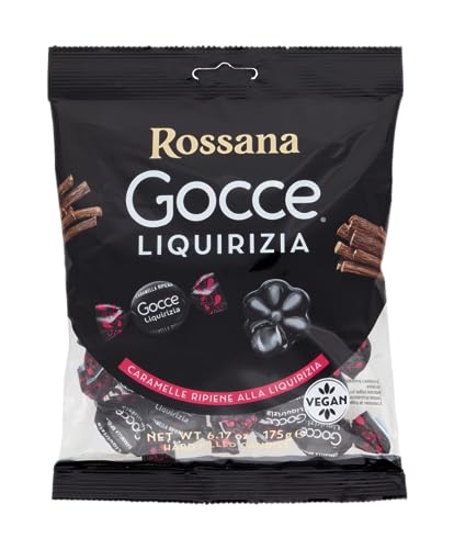 4X Rossana Fida Gocce di LIQUIRIZIA, Caramelle Ripiene alla Liquirizia Incartate Singolarmente Senza Glutine VEGAN 175g [4 Confezioni]