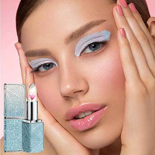Rossetto trasparente con fiore all'interno,Balsamo labbra fiore cambia colore - Trucco labbra idratante a lunga durata con cambio di temperatura Plesuxfy