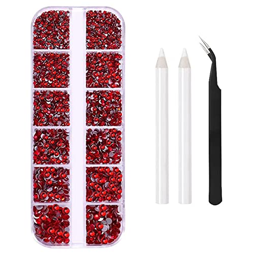 Rosso 2000pc Strass per Unghie Nail Art,Rotondo Strass in Vetro con Retro Piatto,Dimensione Diversa Gemme di Cristallo,Ideale per Decorare Tutti i Tipi di Artigianato con Pinzetta e Penna