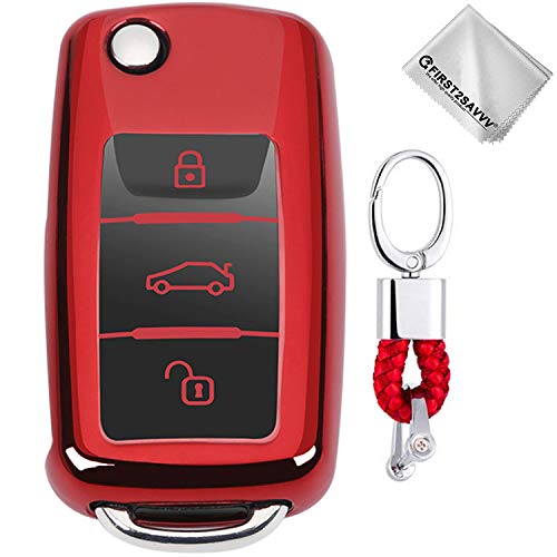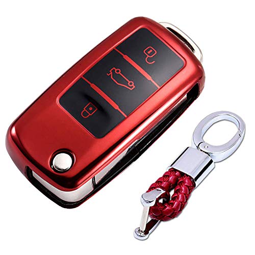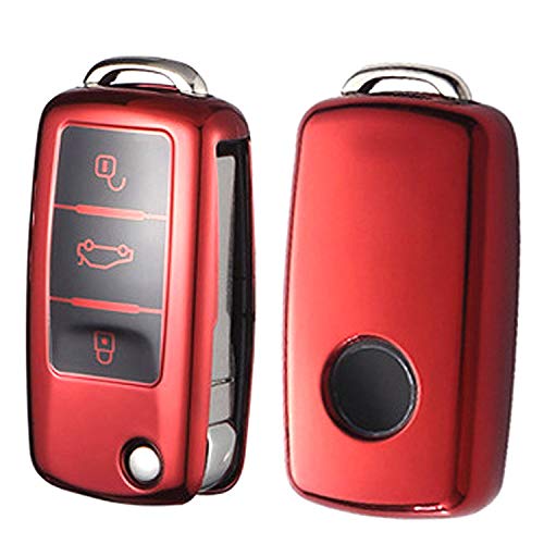 Rosso Cover Chiave Auto VW Volkswagen Jetta Passat Golf Beetle Rabbit GTI CC Bora Polo & Skoda Octavia 3-Buttons - Guscio Protettivo coprichiave in Morbido Silicone TPU - Custodia per Chiave