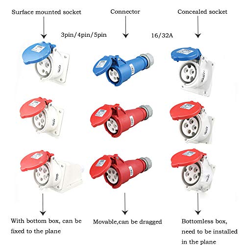 Rosso Industriale Spina & Prese, POWERTOOL IP44 Sito Industriale Spina & Presa a Muro Impermeabile Spina Connettore Presa (4Pin 32A Socket-B)