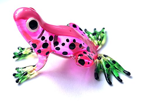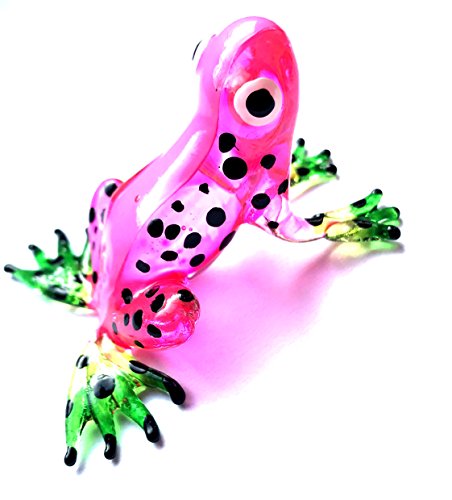 Rana Rosso Rosa Verde - Statuetta in vetro con rosa schiena strisce verdi e piedi - Vetro Figura animale T 01 Deko Setzkasten vetrina
