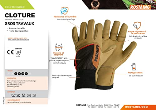 ROSTAING CLOTURE-I Guanti PRO Spillato, Beige (Marrone) - T09