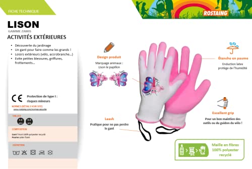 ROSTAING Guanti da giardinaggio per bambini LISON - Coppia di guanti da giardinaggio e fai da te, per le mani piccole e delicate e la sicurezza dei vostri bambini