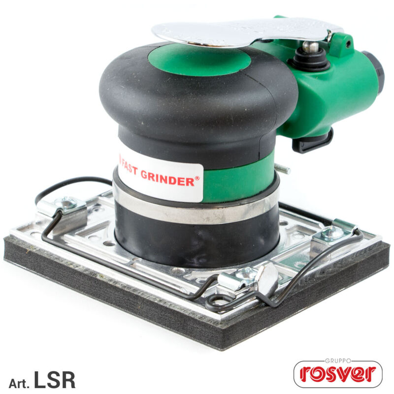 Levigatrice Orbitale Quadrata LSR D.100x110 - Con Platorello a strappo - Rosver Levigatrice orbitale quadrata con platorello velcrato 110x100mm cambio rapido del foglio velcrato Orbita di 5mm Levigatrice Orbitale Quadrata POTENZA 300 Watt (0.40 HP) PLATORELLO 110x100mm VELOCITÀ 10.000 RPM CONSUMO 340 l/min INGRESSO (NPT) 1/4” PRESSIONE ARIA 6,20 bar LUNGHEZZA 140 mm PESO 0,66 Kg RUMOROSITÀ 80~85 dB(A)