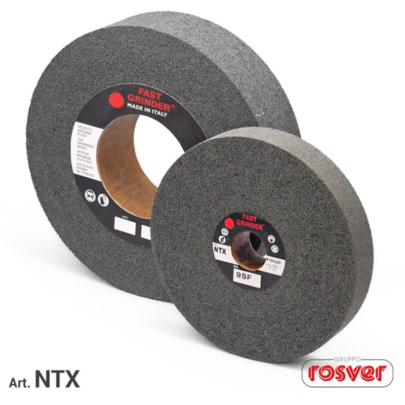Ruota Avvolta - Rosver - NTX D.200x25 F.76 - Conf.1pz Levigatura non aggressiva, pulitura e satinatura con una superficie che rimane molto omogenea. Sbavatura di taglio da laser, sbavatura di alluminio, eliminazione di difetti su estrusioni in alluminio MISURA FORO 7SF 8SF 9SF 200x25 76 34,28 35,96 37,89