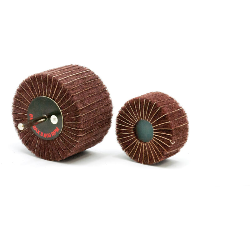 Ruote Abrasive Miste con Gambo - Rosver - NTM D.40x20x6 - Conf.10pz uote abrasive miste su gambo composte da lamelle di tela abrasiva alternate a lamelle di non tessuto abrasivo. La presenza della tela abrasiva rende questo prodotto più aggressivo rispetto alle ruote in solo non tessuto e consente di eliminare segni più marcati, quali graffi, piccole incrostazioni, ecc., dalla superficie del pezzo. - Smerigliatura dolce, senza vibrazioni e poco rumorosa. - Rimozione di graffi e finitura di acciaio. MISURA GAMBO 60 80 100 150 240 40x20 6 4,84 4,84 4,84 4,84 4,84