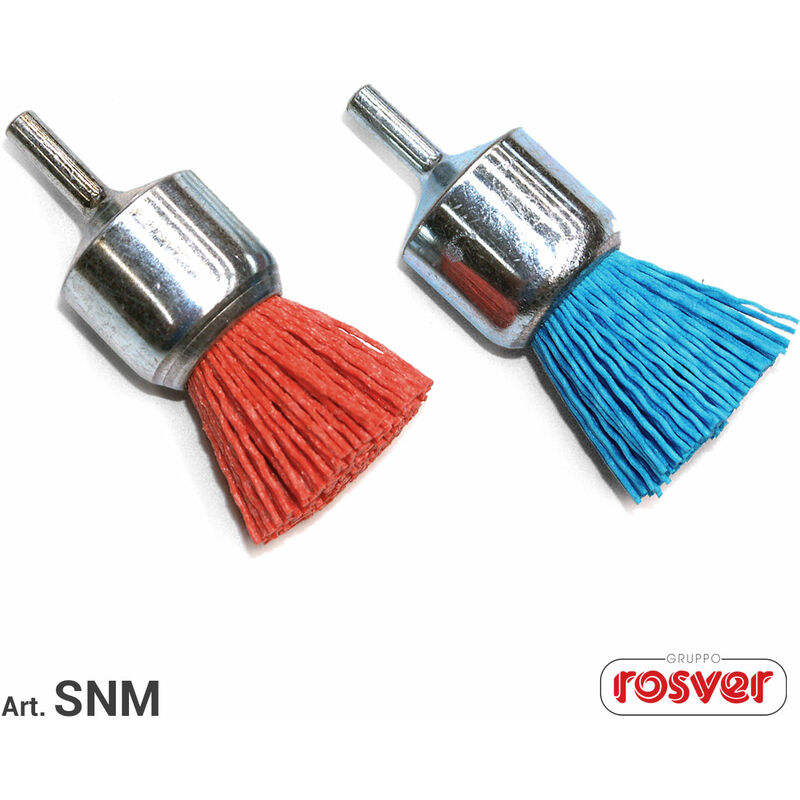 Spazzola Frontale in Nylon SNM G.6 Gr.80 - Rossa - Rosver - Conf.10pz Il filo di nylon è più flessibile e resistente alla rottura del filo d'acciaio. Graffia meno e non fa arrugginire il pezzo lavorato. Sui metalli rimuove l'ossido e i residui di vernice, sui legni prepara la superficie. MISURA GAMBO 80 25 6 4,63 30 6 5,15