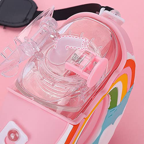 Rosvola Cartoon Donut Bottle PC Portatile Silicone Compact Donut Bottle BPA Free Borsa da Viaggio da 380 Ml (Arcobaleno Rosa)