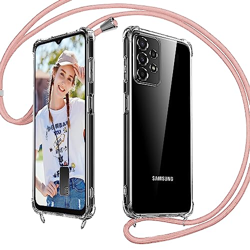 Rosyhulle Collana per Samsung Galaxy A23 5G con nastro, in silicone trasparente per Samsung A23 da 6,6", da appendere, custodia protettiva con catena in TPU, antiurto, collana oro rosa