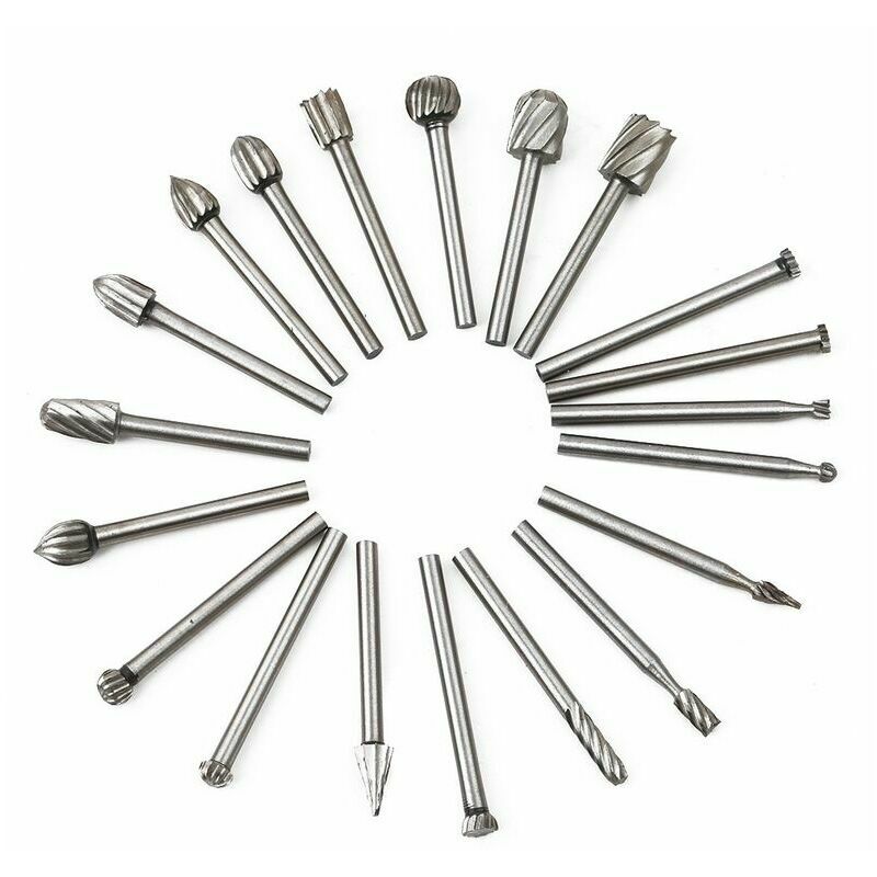 Kit professionale: ci sono 20 diverse forme e dimensioni di frese rotanti, puoi scegliere diversi tipi di teste di taglio in base alle esigenze del lavoro, soddisferanno le tue diverse esigenze di creazione e artigianato. < br/>Multifunzione: le punte diamantate hanno 10 diverse punte di molatura per abrasione, intaglio, taglio, lucidatura e incisione. Compatibilità: gambo 1/8 (3,1 mm), lunghezza 39 mm, adatto per Dremel utensile rotante elettrico e la maggior parte delle mini smerigliatrici. Design intuitivo e facile processo di inserimento, incredibilmente facile da usare. Materiale di qualità: le punte per svasatore sono realizzate in acciaio ad alta velocità di qualità con una lunga durata, presenta i vantaggi di elevata durezza, buona resistenza all'usura e al calore resistenza. Diametro del gambo: 1/8 (3,1 mm) Lunghezza totale: 3/4 (40 mm) Contenuto della confezione: 20 frese rotanti 1.Quando si utilizzano punte da trapano, la temperatura del materiale sarà molto elevata, si