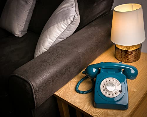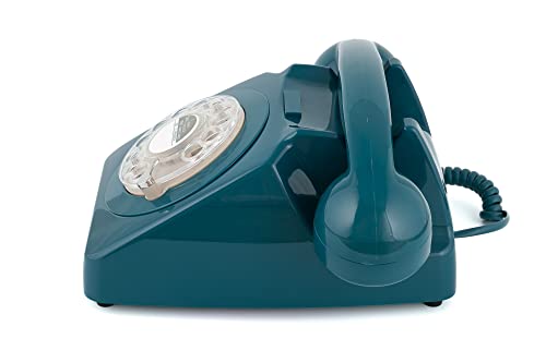 GPO 746 Rotary Telefono Fisso Retro anni ‘70, Telefono Classico con Interruttore per Suoneria, Cavo Arricciato, Suoneria a Campanello Originale, per Casa e Hotel, Blu Ottanio
