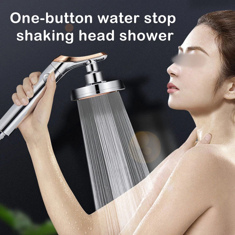 Rotating Shower Head High Pressure Water Saving Strong Current Rainfall Polish Head for Power Shower with Switch Button Handheld