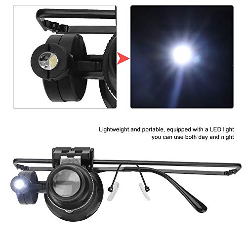 Rotekt Strumento Lente d'Ingrandimento, Singolo Tipo di Occhiali 20X Lente d'Ingrandimento Specchio oculare Lente di ingrandimento Accessorio per la Riparazione di Orologi con luci a LED