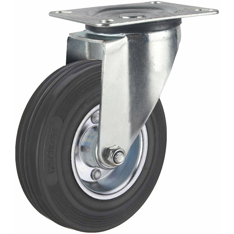 La rotella industriale girevole diametro 125 mm con portata di 130 kg è un comodo accessorio da utilizzare in impieghi leggeri, di conseguenza con carichi non troppo impegnativi. Applicabili ovviamente sui classici carrelli industriali, ma anche in scuole, ospedali o ristoranti. E' silenziosa e fortunatamente non produce il classico cigolio molto fastidioso all'orecchio umano. La caratteristica principale di questo articolo è che può ruotare di 360° e ciò permette al cliente di muoversi senza difficoltà e più velocemente. Il materiale con cui è stata costruita è la cosiddetta gomma termoplastica, in modo tale che rappresenti uno strumento resistente, ma al tempo stesso che non lascia tracce sulla pavimentazione. Questo pezzo di ricambio è costituito, innanzitutto, da una piastra di supporto in acciaio zincato ed anti usura. Questo fa sì che il peso movimentato non sovraccarichi troppo la ruota cosicchè si evita il rischio che la ruota possa schiacciarsi lasciando tracce sul pavimento.