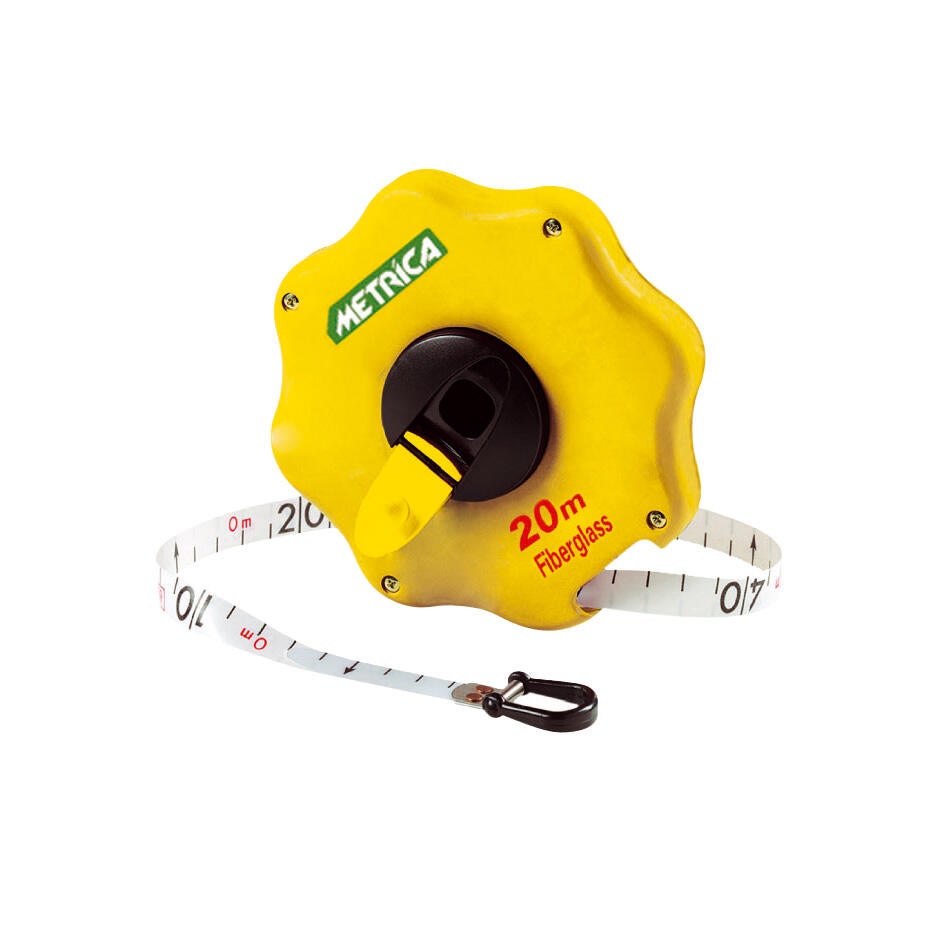 Rotella metrica in fibra di vetro, lunghezza 10 m, larghezza 13 mm. Custodia a struttura aperta per una maggiore pulizia del nastro