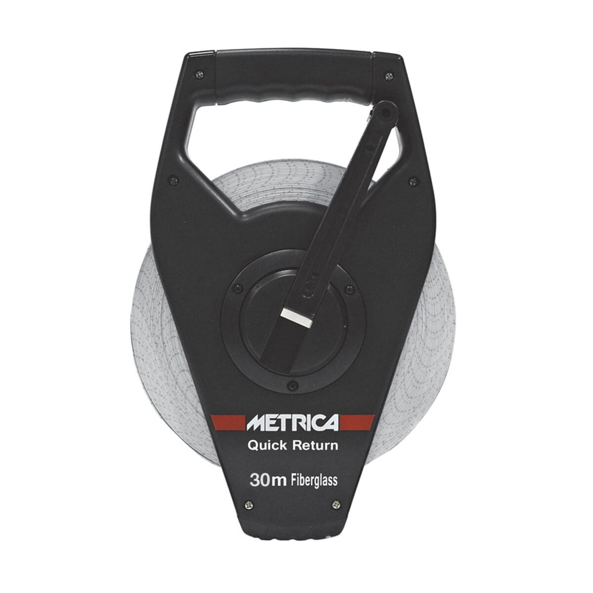 Rotella metrica in fibra di vetro, lunghezza 30 m, larghezza 13 mm. Custodia a struttura aperta per una maggiore pulizia del nastro