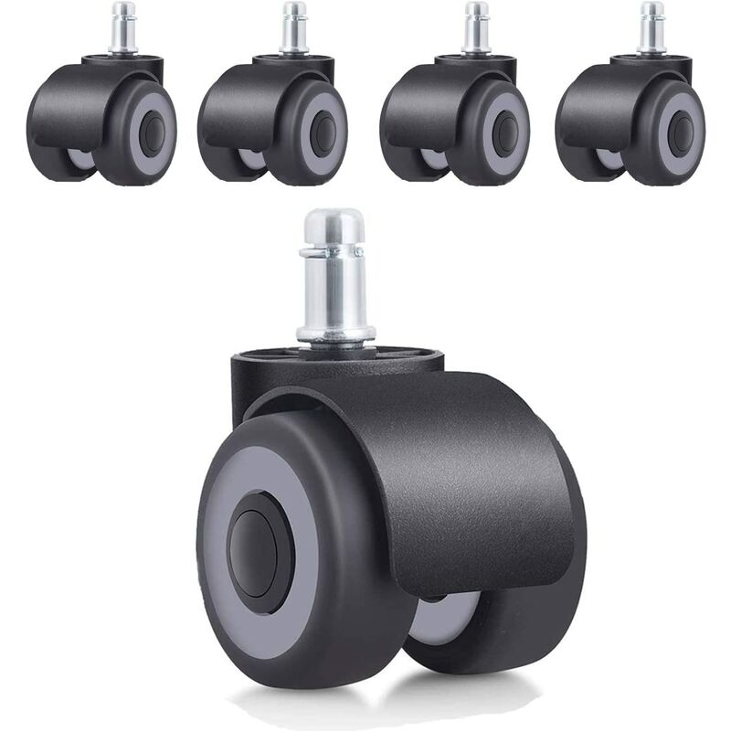 Robusto e durevole - La sedia da ufficio sostitutiva YeMI ha un design con cuscinetti a sfere quadrupli. Il design resistente supporta fino a 700 libbre come un set di 5, le ruote per sedie PIÙ FORTI su Amazon. Rotelle per sedie da ufficio girevoli Realizzate in TPR di alta qualità per garantire ottime prestazioni nel tempo. Perfetto per sostituire le ruote delle sedie da ufficio. 【Dimensione principale】Ruote Presenta uno stelo standard da 11 mm di diametro x 22 mm di lunghezza e ruote gemellate TPR da 50 mm. Adatto per ufficio, scuola, casa ecc., anche per pavimenti duri, pavimenti in legno e altri tipi di pavimento. 【Protezione del pavimento】Le rotelle per sedie da ufficio sono realizzate in morbido TPR per garantire un rotolamento facile e regolare della sedia sul pavimento che non lascerà segni sul pavimento. Ottieni una guida fluida e silenziosa proteggendo i tuoi pavimenti. Pavimenti in legno duro, moquette, laminato e ceramica inclusi. 【Installazione facile】Rotelle sostitutive