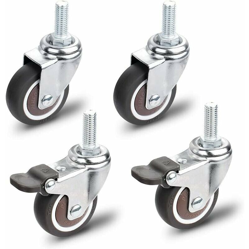 Dimensioni perfette: diametro 50 mm, larghezza ruota 17 mm, altezza di montaggio 67 mm, attacco manubrio M10 x 25 mm Materiali di alta qualità: le ruote sono realizzate in materiale PTE e il guscio robusto rende il nostro strumento universale ruote prive di usura e molto resistenti e durevoli. Scelta flessibile: il pacchetto include 2 rotelle M10 senza freni e 2 rotelle M10 con freni. Ogni rullo ha una capacità di carico di 30 kg e un set di 4 ha un totale di 120 kg. Silenzioso: cuscinetti a basso rumore integrati, molto silenziosi e durevoli. Le ruote possono essere ruotate di 360 gradi. È la scelta ideale per tutti i mobili fai da te con ruote mobili. Ampia gamma di applicazioni: le rotelle girevoli sono utilizzate in case, scuole, negozi e ospedali. Ottimo anche per tavolini da caffè, portapiante, librerie, scarpiere, carrelli della spesa e banchi da lavoro. Descrizione del prodotto ✔ Materiale TPE, resistente all'usura e alla ruggine, forte e durevole. ✔ Ogni bici ha un carico