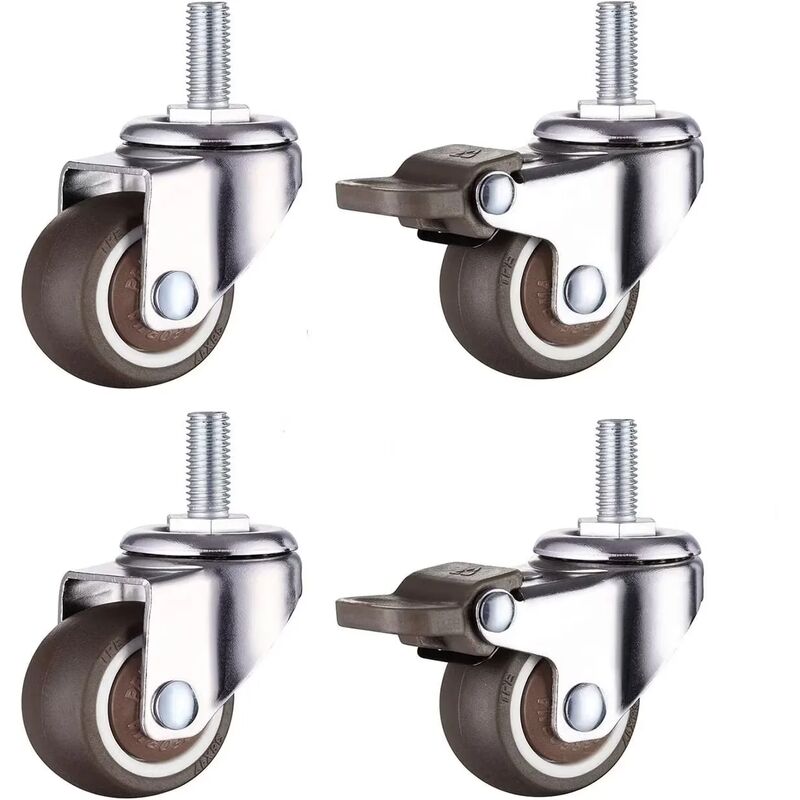 Colore come mostrato Dimensioni: 10,1 x 10,1 x 4,2 cm Peso: 290 g Diametro della ruota: 25 mm. Carica massima: 10 kg per ruota Diametro filettatura: 6 mm. Lunghezza del filo: 15 mm. Altezza di installazione: Le ruote in gomma morbida da 40 mm e TPE sono robuste e resistenti. Adatto a tutti i tipi di pavimento (laminato, legno, ceramica, vetro, moquette, marmo, ecc.) Ruote perfette con freno per piccoli elettrodomestici e piccoli mobili come tavolini, portapiante, librerie, scarpiere, scatole per giochi, carrelli della spesa, banchi da lavoroTipo di installazione: barra filettata. Colore caffè. Contenuto della confezione: 2 ruote filettate M6, 2 ruote filettate M6 con freno