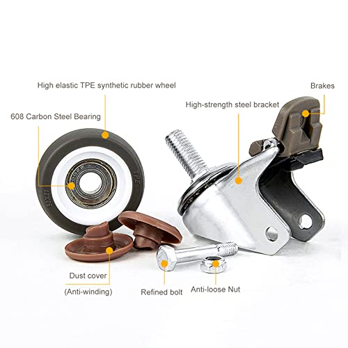 Rotelle Pivotanti Per Mobile,Ruote Girevoli in Gomma Per Carichi Pesanti 4 Pezzi,Ruote Per Mobili Con Freno,Ruote Piroettanti Senza Freno, Ruote Di Ricambio Per Carrello e Sedie,4Nobrakes-25mm/M6
