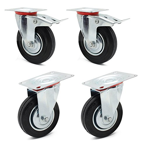 Set di 4 Rotelle Pivotanti Ruote da Trasporto per Mobile Diametro 125 mm Ogni 100 kg carico (2 x ruote di trasporto con piastra senza freno, 2 x rotelle con freno della ruota)
