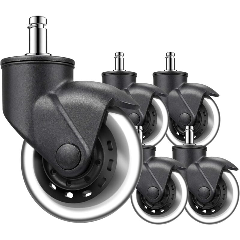 11 mm x 22 mm - Controlla le dimensioni delle rotelle della sedia da ufficio prima di ordinare per assicurarti che si adatti. Può ruotare di 360°. [Materiale] Le nostre rotelle silenziose per sedia sono realizzate in acciaio di alta qualità, poliuretano (PU) e nylon. Elevata capacità di carico e lunga durata. 【Facile da installare】 Installazione semplice, rapida e intuitiva. Le rotelle per sedie da parquet sono adatte per la maggior parte delle sedie da ufficio e da gioco per computer. Proteggi il tuo pavimento: queste rotelle universali per sedie possono proteggere legno duro, laminato, piastrelle, ardesia e tutte le altre superfici dure. Silenziose senza graffi: le nostre rotelle universali Le ruote girevoli per sedia da ufficio forniscono una rotazione fluida e silenziosa e un movimento fluido senza lasciare graffi o segni.